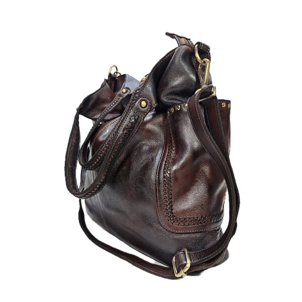 €198.00Borsa shopping “VANESSA EDIZIONE LIMITATA” in morbida pelle tamponata a mano con sfumature. due tasche laterali e manici con dettagli intrecciati chiusura con cerniera zip. fodera in cotone con tre…