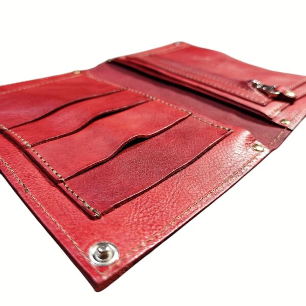 Portafoglio Donna in vacchetta tinto a mano con borchie e strass / chiusura con bottoni a pressione / 3 scomparti 4 taschini porta tessere e portamonete con chiusura lampo