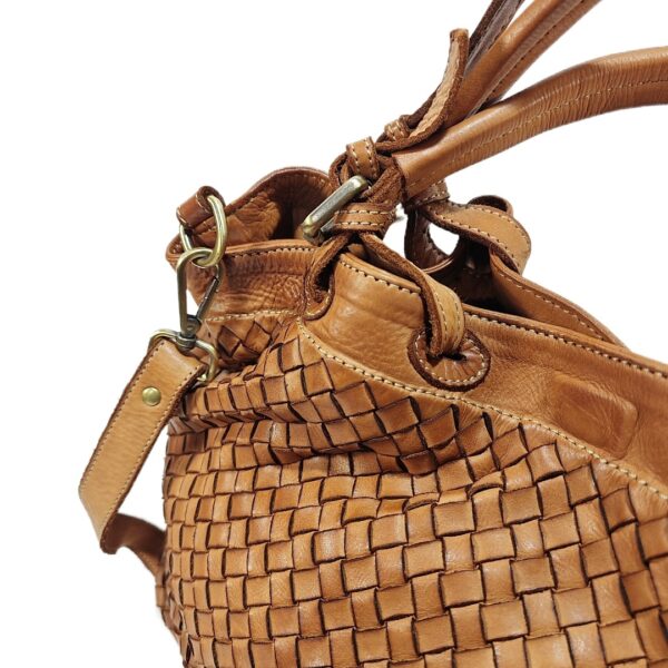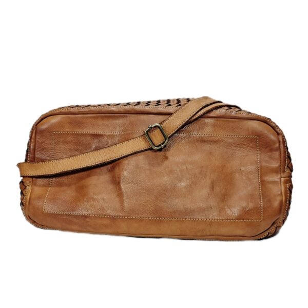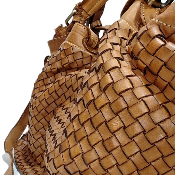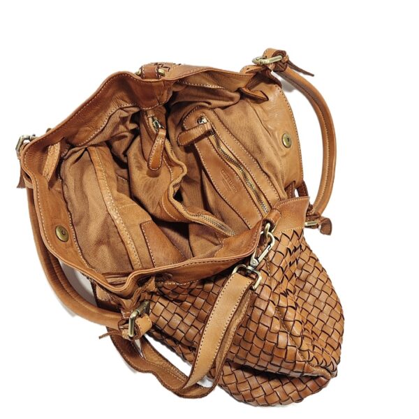 Borsa GIORDANA XL dallo stile retrò in morbida pelle lavata intrecciata. chiusura tramite bottone magnetico. fodera in cotone con scomparto interno indipendente con chiusura lampo rinforzato con profilo in pelle più tre tasche di cui una con chiusura zip. provvista di tracolla regolabile da 2 cm