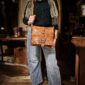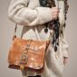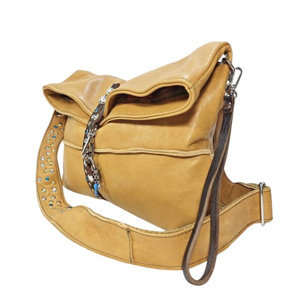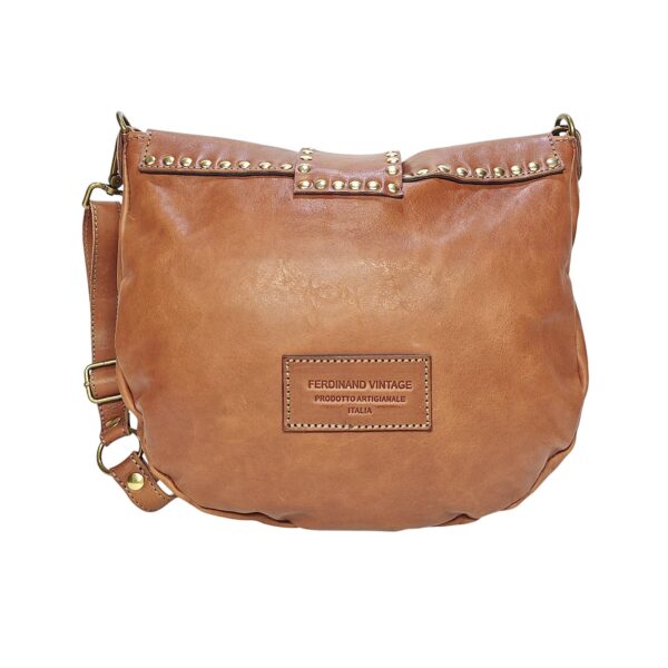 Borsa Donna in pelle vacchetta modello Tolfa a patta lunga decorata con pietre e borchie in zama / Tipo di chiusura magnetica / tracolla da 2 cm regolabile / fodera in cotone e tasca con chiusura lampo da 20 cm con profilo in pelle più taschino.