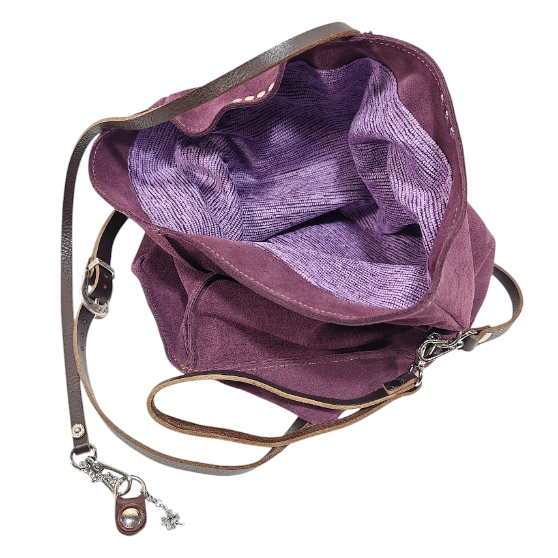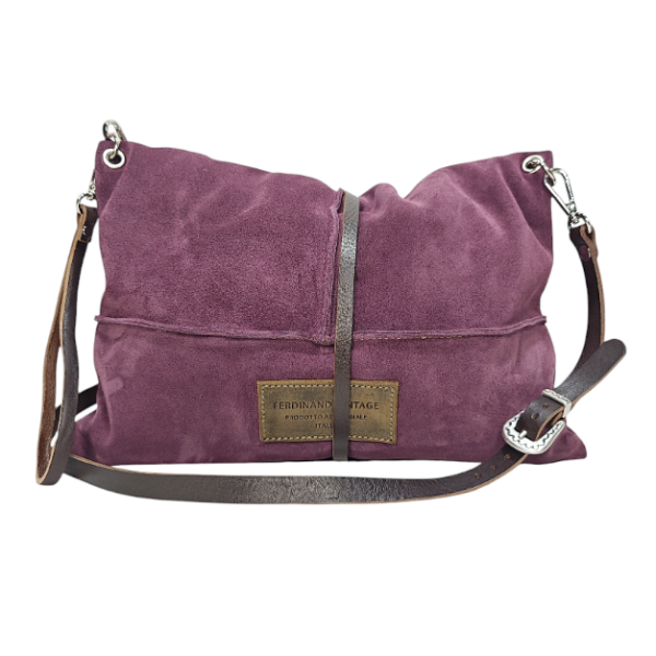 Borsa MIREA cross body in morbida pelle scamosciata / tipo di chiusura cinturino in cuoio girevole con calamita / tracolla in cuoio da 1,5 cm regolabile con fibbia più manicotto / fodera in cotone con bordo interno in pelle “NOTA” : non sono presenti tasche interne.
