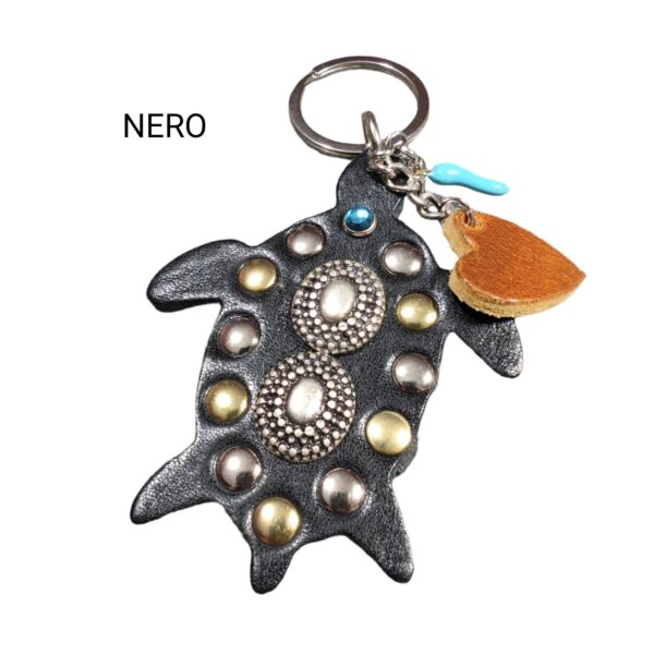 Portachiavi in cuoio a tartaruga con borchie e strass, SELEZIONA IL COLORE PRIMA DI AGGIUNGERE AL CARRELLOย  …ย  CONFEZIONE REGALO INCLUSA!!!